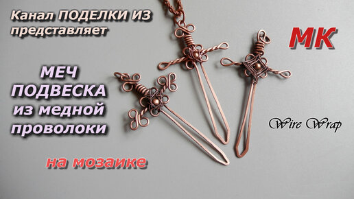 МЕЧ ПОДВЕСКА из медной проволоки на мозаике Wire Wrap