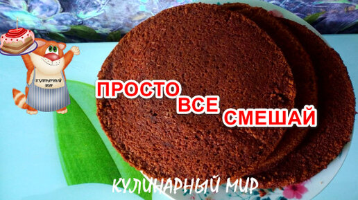 ПРОСТО СМЕШАЙ И В ДУХОВКУ! ШОКОЛАДНЫЙ БИСКВИТ ДЛЯ ТОРТА. Кулинарный Мир.
