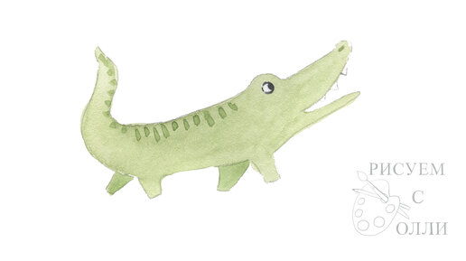 Рисуем крокодила акварелью