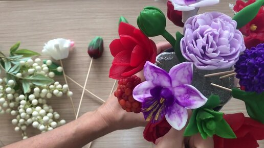 Собираю букет из мыла с амариллисом, орхидеями и сиренью в шляпной коробке