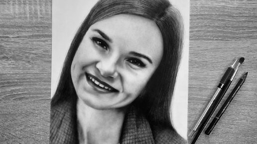 Рисую портрет милой девушки с очаровательными ямочками на щеках.