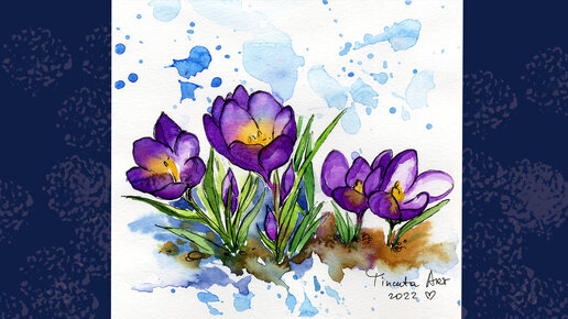 Рисуем весенние крокусы акварелью