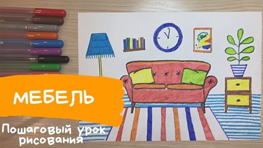 Комната рисунок. Как нарисовать мебель. Рисунок мебель для детей. Мир созданный человеком. Карандаши и краски.