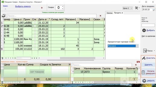 Разные схемы продаж по нескольким торговым точкам или по магазину и складу