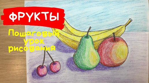 Фрукты рисунок. Как нарисовать натюрморт для детей. Натюрморт с фруктами рисунок. Композиция. Карандаши и краски.