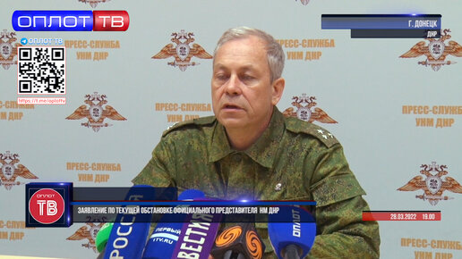 Заявление официального представителя НМ ДНР полковника Э.Басурина по обстановке на 19.00 от 28 марта