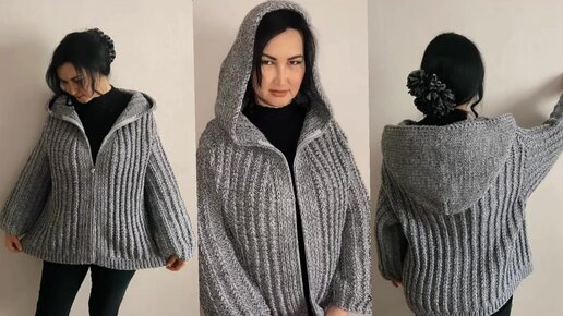 🔥Кардиган с капюшоном / реглан-погон / без швов / кардиган спицами/ КАРДИГАН ПАЛЬТО С КАПЮШОНОМ. 🧶