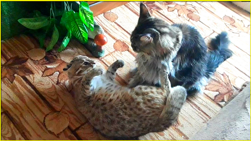 ДАЛЬНЕВОСТОЧНЫЙ КОТ БАЛУЕТСЯ С МЕЙН-КУНОМ