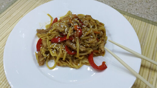 Для ценителей азиатской кухни - удон с курицей. Дорогую лапшу не использую, нашла отличную замену