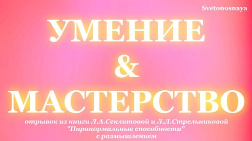 Умение и мастерство из Паранормальные способности, Л.А.Секлитова, Л.Л.Стрельникова, с размышлениями.