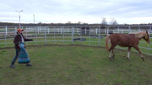 Приучение к паду лошади. Оригинальный "ковбойский" способ. Работа в "бочке". Клёвый.