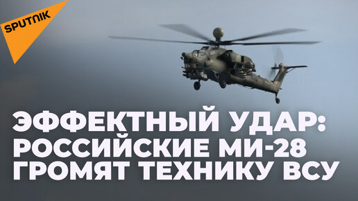 Минобороны России показало, как российские вертолеты Ми-28 уничтожают бронетехнику ВСУ
