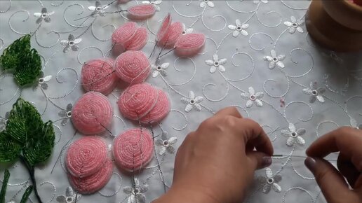 Нежная роза из бисера . Часть1