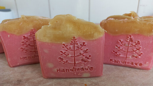 Клубничное мыло с нуля холодным способом с добавлением фруктовой пудры.