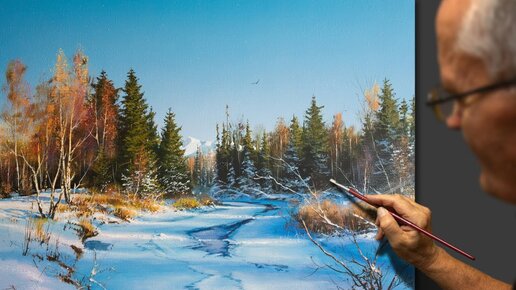 Winter camping (winter landscape painting) Acrylic. Artist - Viktor Yushkevich. #88 photos in 2021.