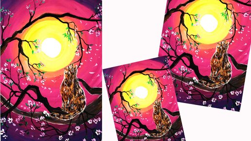 Как нарисовать кота под луной. Рисуем весенний пейзаж. Яблоня в цвету.