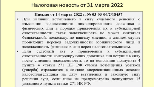 Учет по налогу на прибыль задолженности при привлечении лиц к субсидиарной ответственности