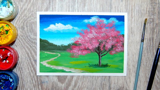 Рисуем весенний пейзаж с вишней | Пошаговый урок