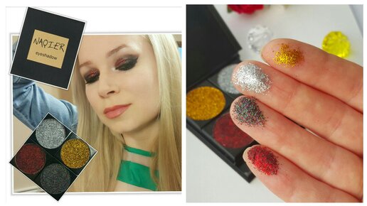 Тестируем палетку трансформер Naqier. Глитерные тени, блестки в макияже глаз