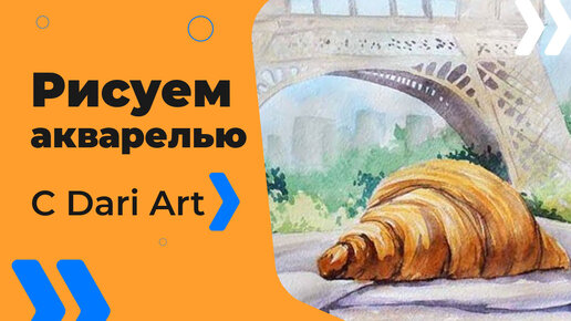 Бесплатный урок рисования! Рисуем акварелью французский круассан! Акварель для начинающих!