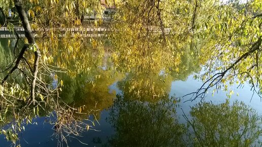 Блики солнца, отражаясь воде воды играют на листьях ив