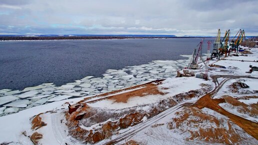 Ледовая обстановка на стрелке рек у речного порта в Самаре 28 марта
