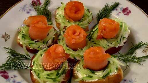 Бутерброды на праздничный стол с красной рыбой и огурцом. Быстро и очень вкусно!