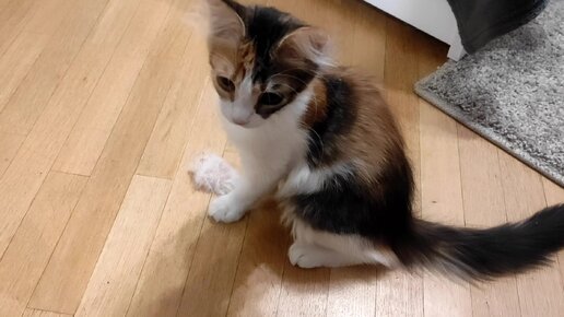 Кроличьи хвостики были побеждены. Реакция котёнка Марго на новую игрушку