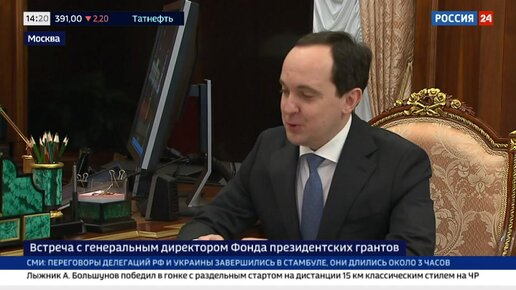 Встреча Владимира Путина с генеральным директором Фонда президентских грантов Ильей Чукалиным