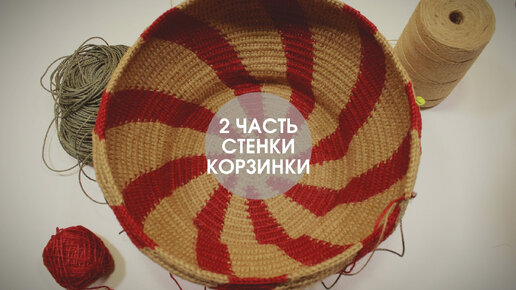 ВЯЗАНАЯ КОРЗИНА из джутового шпагата натурального и красного цветов. 2 ЧАСТЬ
