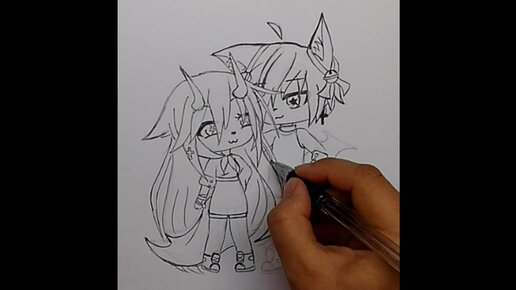 Как нарисовать двух персонажей из gacha life \\ мальчика и девочку \\ парочка чиби // фурри