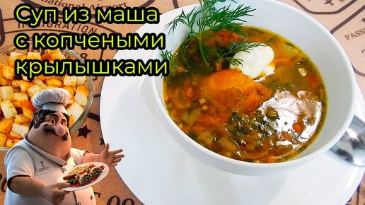 Суп из маша с копчеными крылышками.