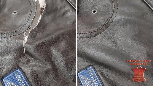Ремонт и покраска порванной кожаной куртки. Реставрация кожи