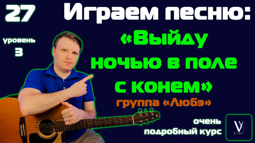 УРОК №27. Играем всю песню "Выйду ночью в поле с конем" группа "Любэ". Песня на простых аккордах для гитары. Группа Любэ.