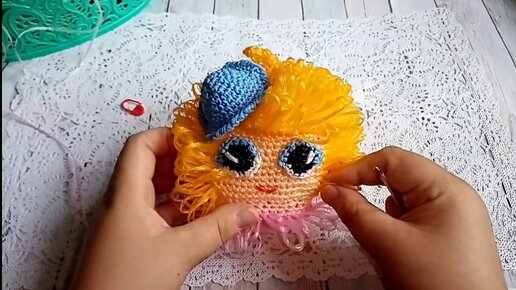 Кукла в шляпке.Мочалка- игрушка крючком.