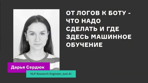 Дарья Сердюк, Just AI. От логов к боту – что надо сделать и где здесь машинное обучение