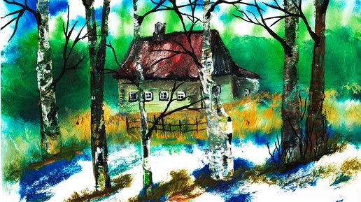 Как нарисовать деревенский домик. Рисуем весенний пейзаж. Рисуем весну в деревне.