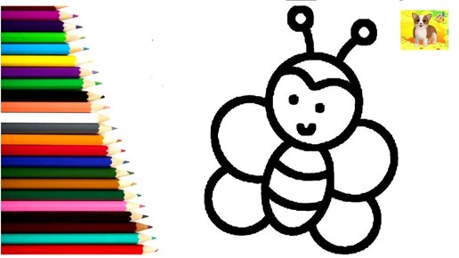 Как рисовать Бабочку. Рисунок раскраска для детей Бабочка. Рисую забавные милые рисунки для детей.