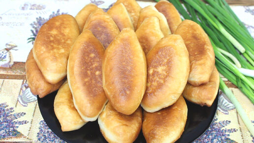 Пирожки жареные с зеленым луком, яйцом и рисом. Дрожжевое сдобное тесто.