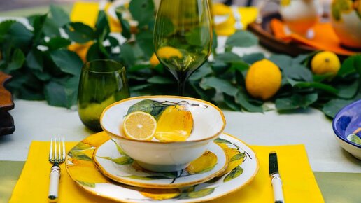 Лучшие идеи для средиземноморской сервировки стола с использванием лимонов.