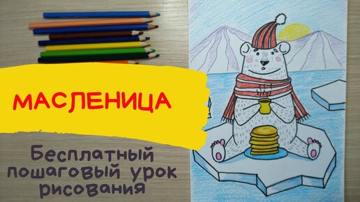 Медведь рисунок. Медведь рисунок для детей. Белый медведь рисунок. Масленица рисунок. Тепло и холод. Карандаши и краски.