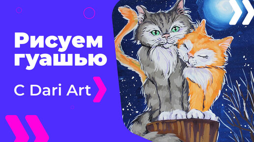 Бесплатный урок рисования! Как нарисовать влюбленных котиков гуашью! Гуашь для начинающих!