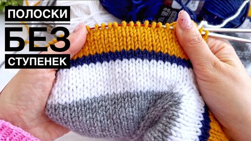 Как вязать полоски без ступенек при круговом вязании. Уроки вязания спицами для начинающих.