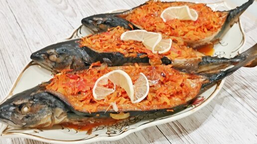 Божественная скумбрия, фаршированная овощами в духовке. Получается очень вкусная и сочная рыба.