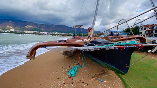 АДСКИЙ ШТОРМ ВЫКИНУЛ И РАЗВОРОТИЛ ЯХТУ В ГЕЛЕНДЖИКЕ НА ПЛЯЖ