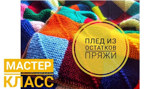 Плед из остатков пряжи спицами \ мастер класс \ Печворк спицами