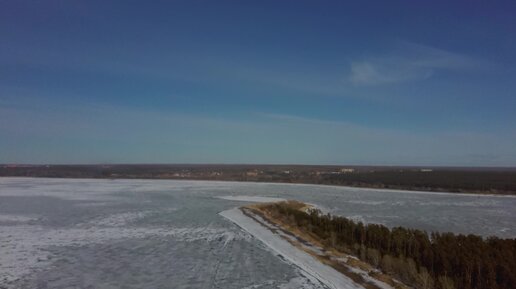 Бердская коса весной. Обское море под льдом, парк отдыха зелёный остров.