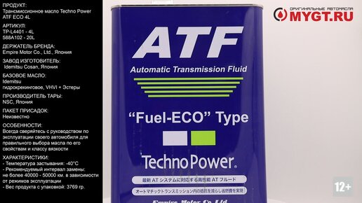 Трансмиссионное масло Techno Power ATF ECO 4L TP-L4401 #ANTON_MYGT