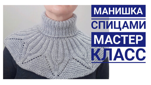 Интересная женская манишка спицами \ подробный мастер класс \ круглая кокетка