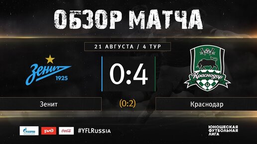 "Зенит" - "Краснодар". Обзор матча. 4 тур| ЮФЛ 2019/20